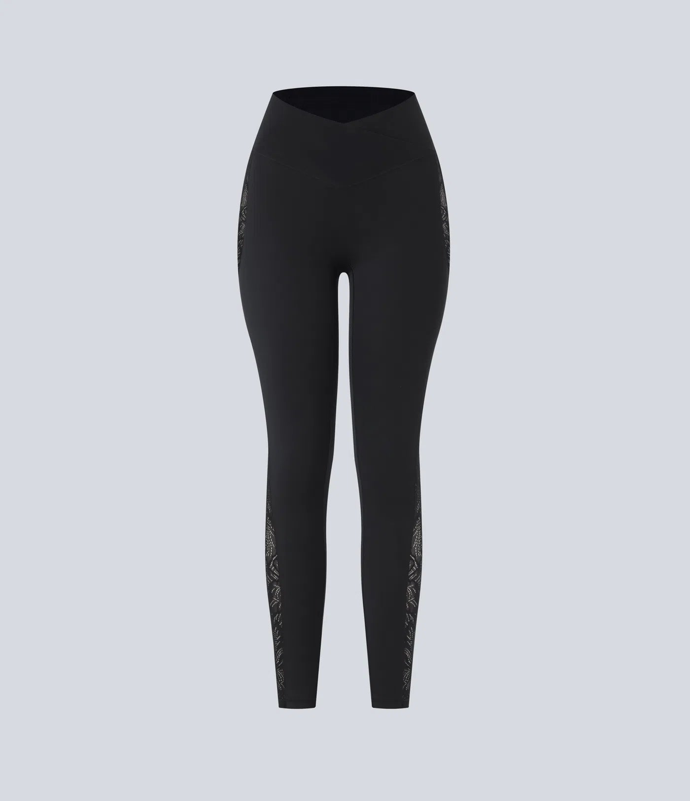 SoftlyZero™ High Waisted Crossover Contrast Lace Pocket Yoga Leggings-UPF50+